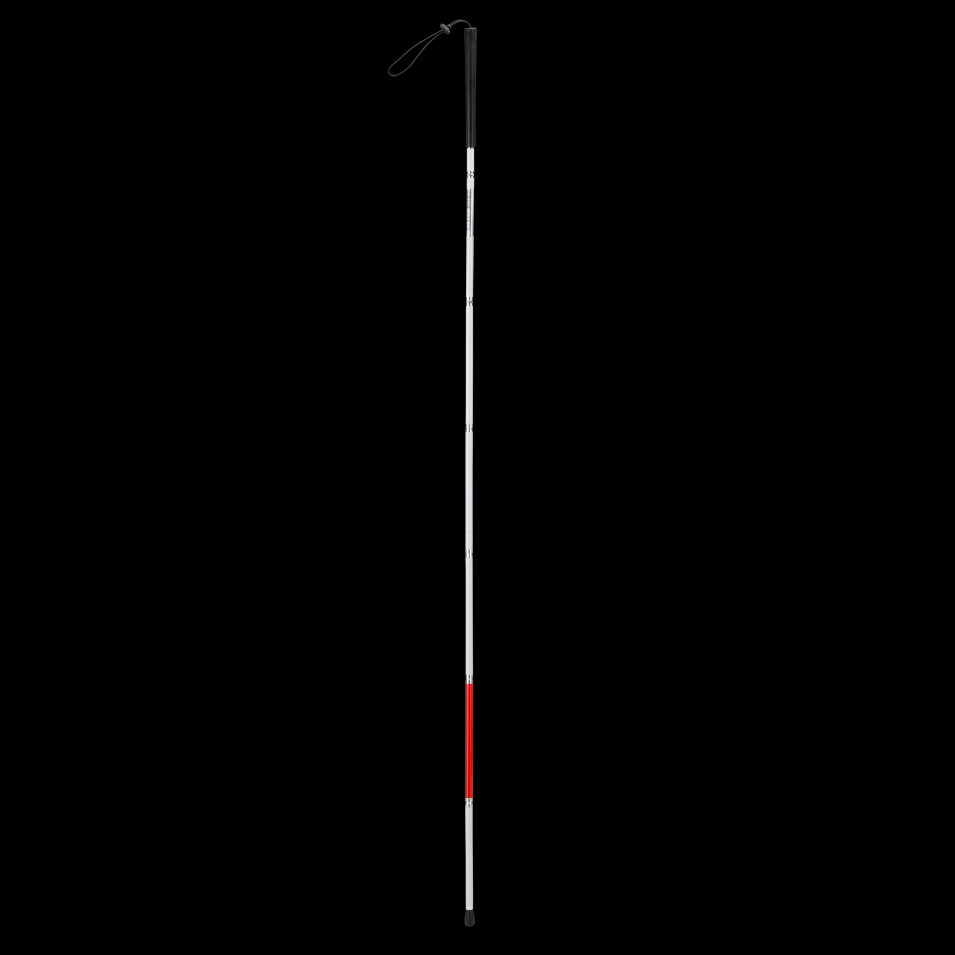 De opvouwbare taststok van MultiMotion is lichtgewicht, rood-wit voor goede zichtbaarheid.