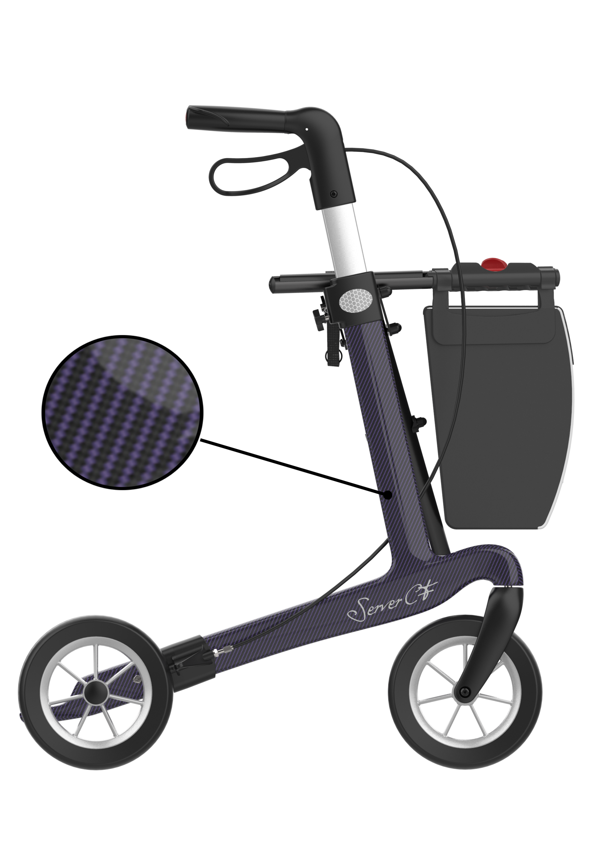 De Server CF rollator vertegenwoordigt de elegantie en de prestaties van de Rehasense rollators. Met een laagst gewicht tot minimaal 5 kg voor de kleinste versie kan de Server CF tot 150 kg belast worden. Zeer uitgebalanceerd ontwerp, optimaal rechtstandig op te tillen.