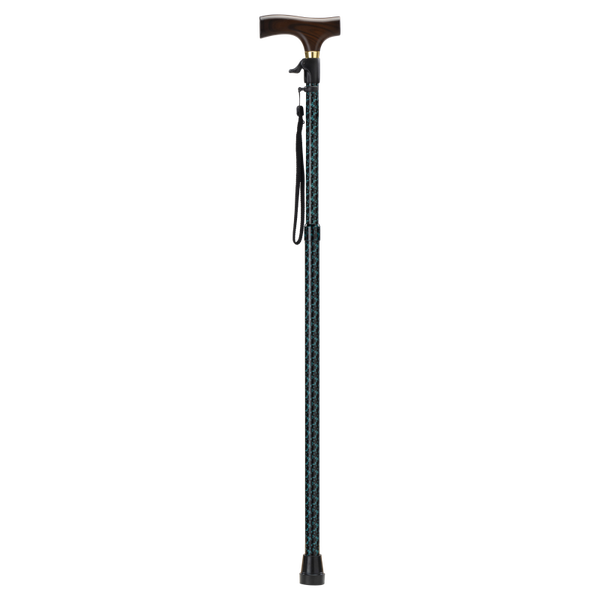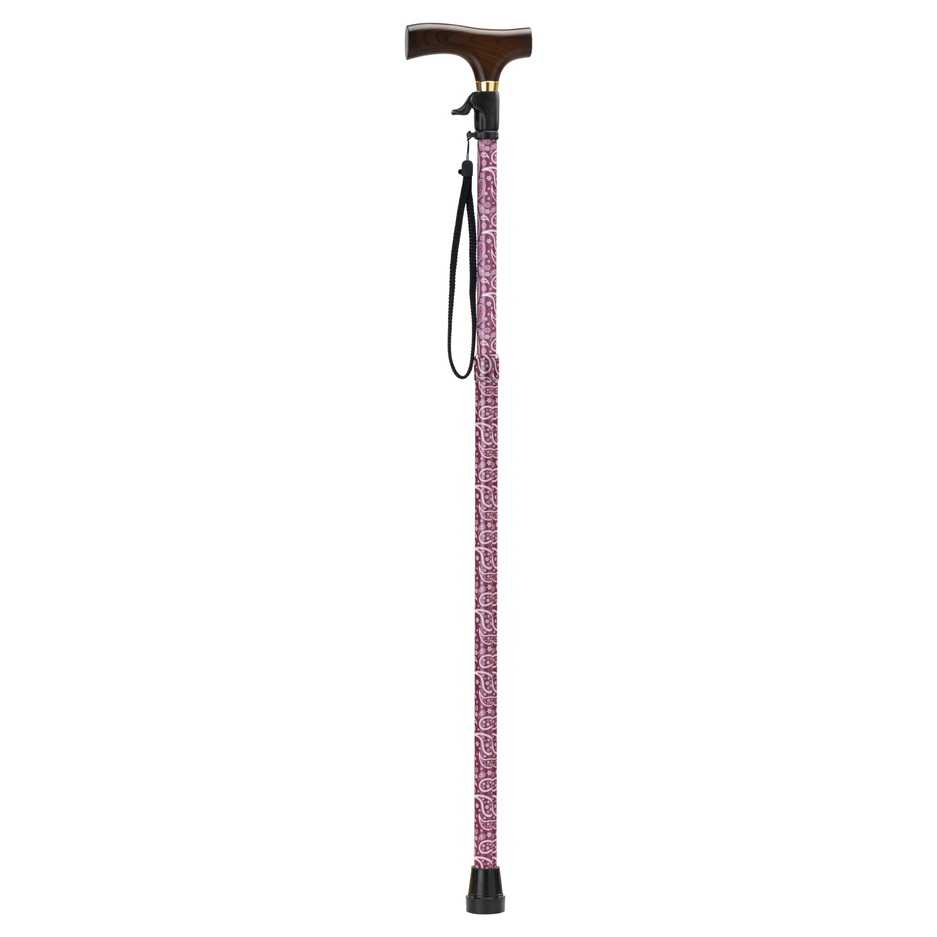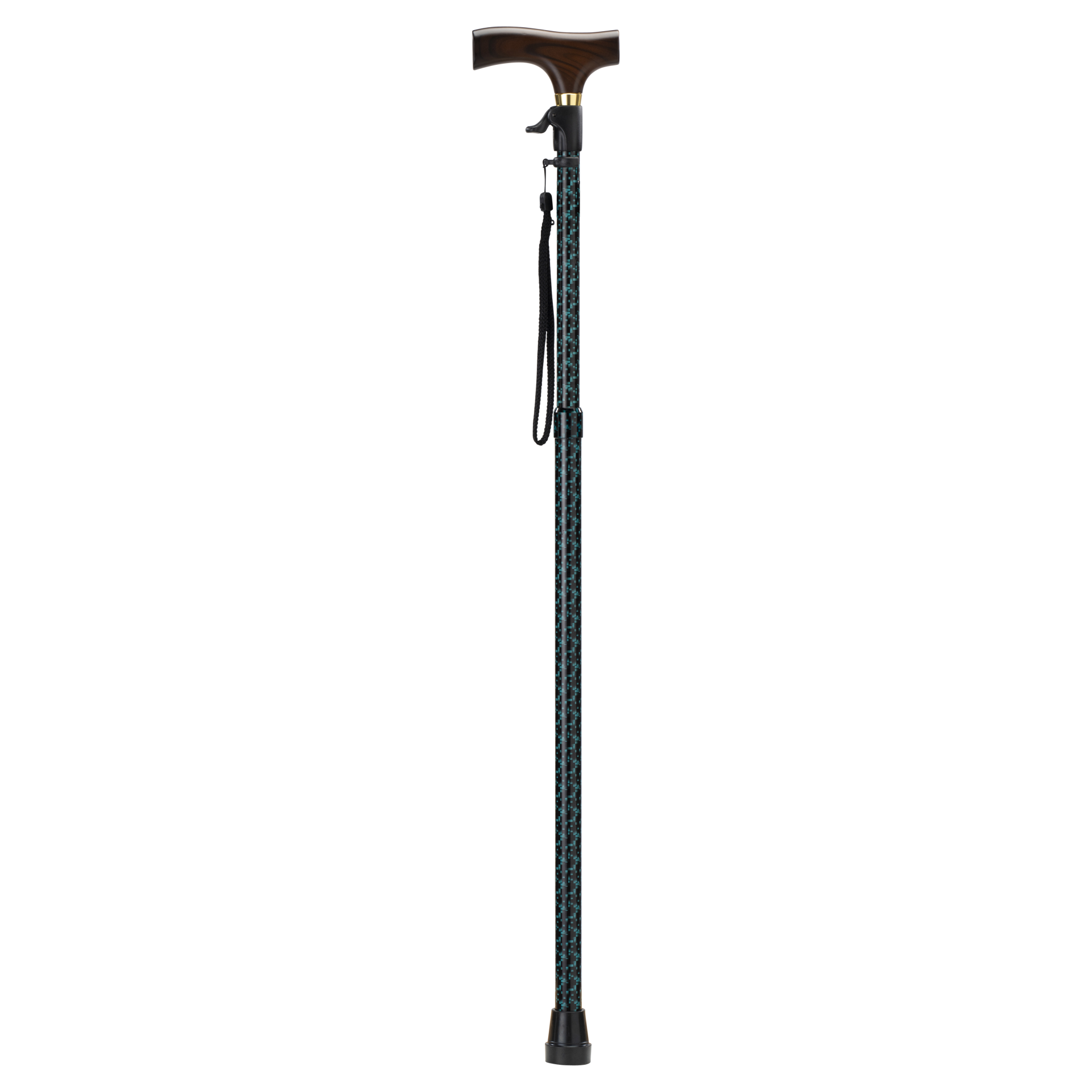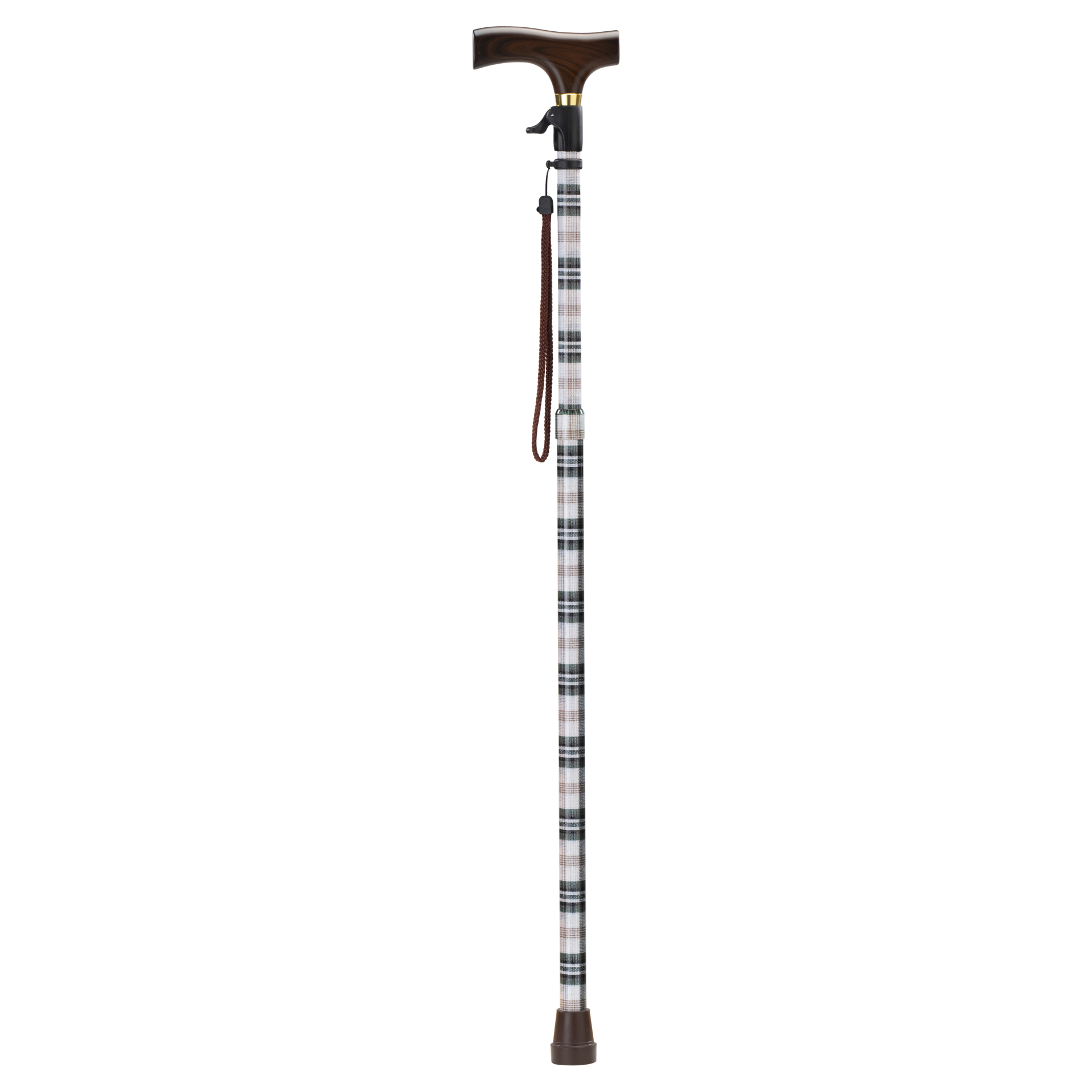 Deze aluminium wandelstok is eenvoudig in hoogte te verstellen met slechts één druk op de knop onder het handvat. Dankzij het innovatieve systeem is de gewenste hoogte in een seconde ingesteld. De rubberen dop zorgt voor goede grip en demping, terwijl het ergonomisch gevormde handvat comfortabel in de hand ligt. De wandelstok is geschikt voor zowel links- als rechtshandige gebruikers en wordt geleverd met een polsbandje.