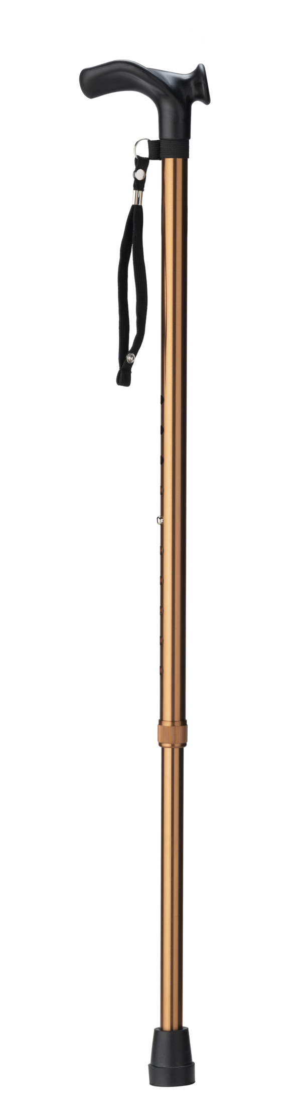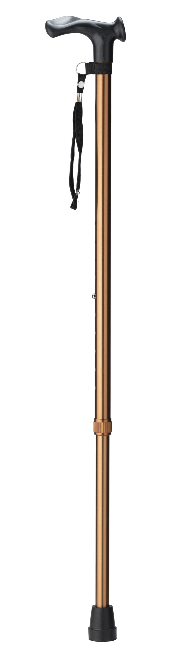 Deze aluminium wandelstok is voorzien van een anatomisch gevormd handvat dat de handpalm optimale ondersteuning biedt. De hoogte van de stok is verstelbaar van 75 tot 97 cm in 10 stappen. Verkrijgbaar in zwart en bruin voor zowel links- als rechtshandigen. De rubberen dop zorgt voor een goede grip en dempt schokken.